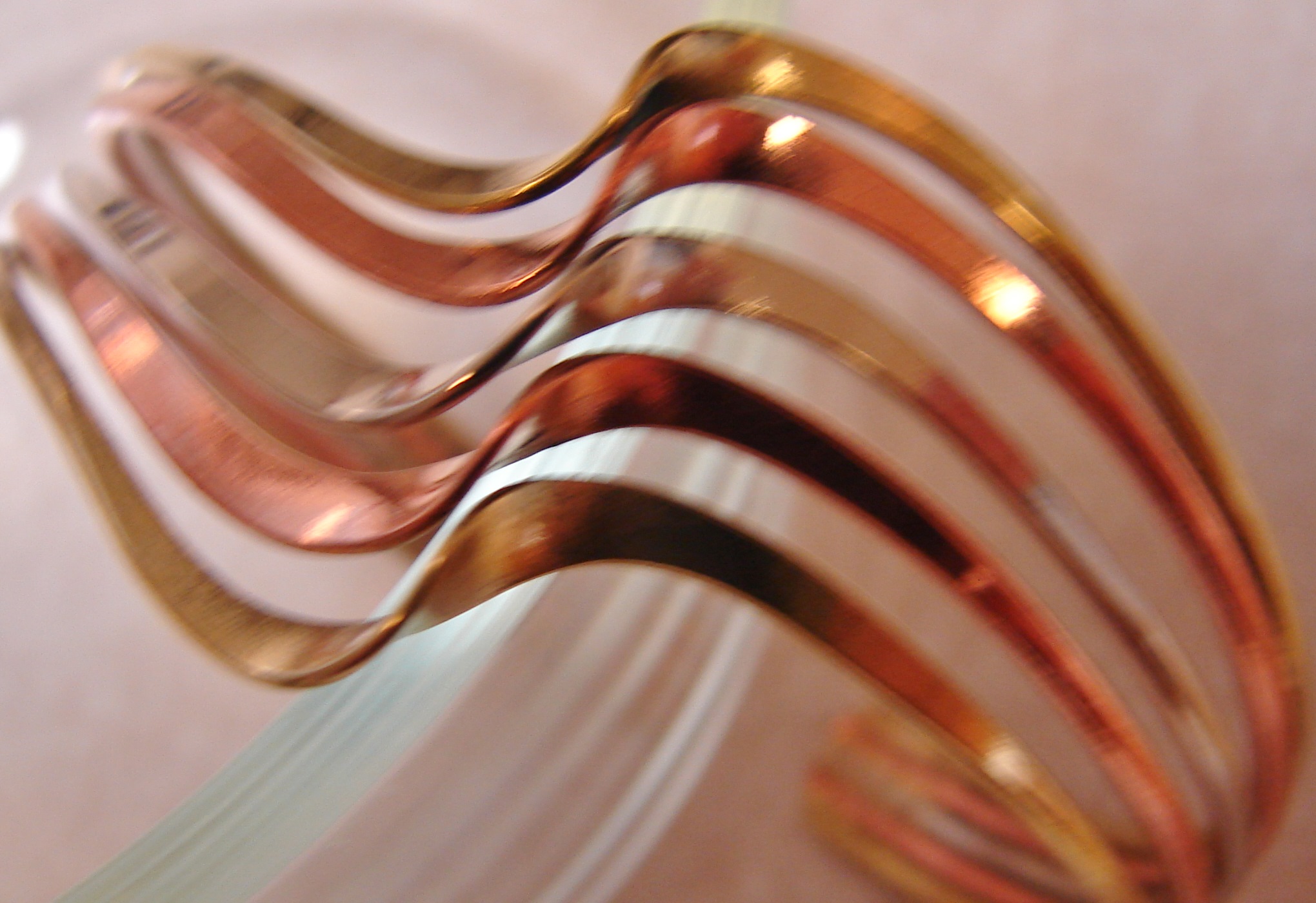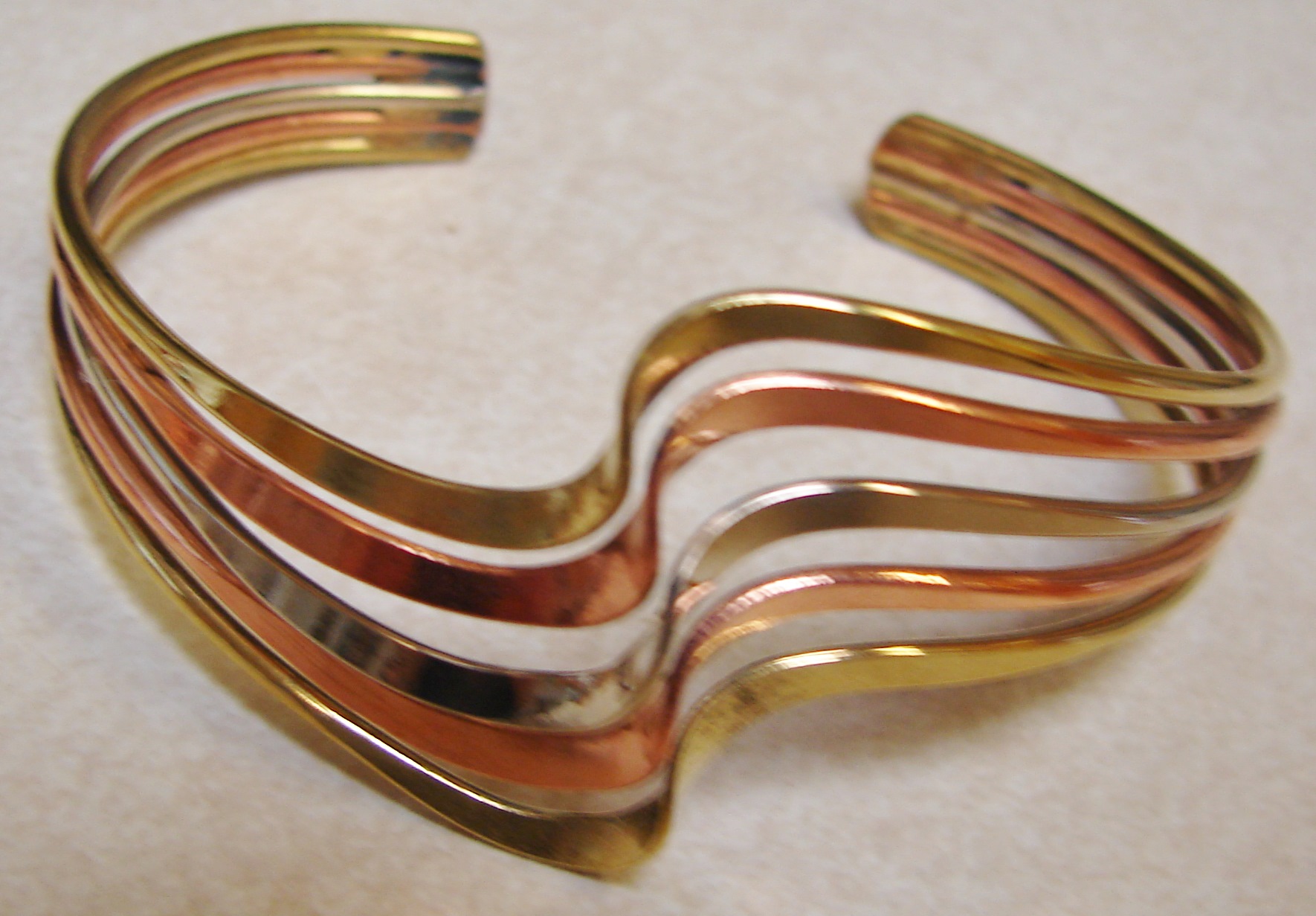 Love this one, its 1 1/4" at its widest point and is made of copper and brass. Very pretty. Free shipping in the USA